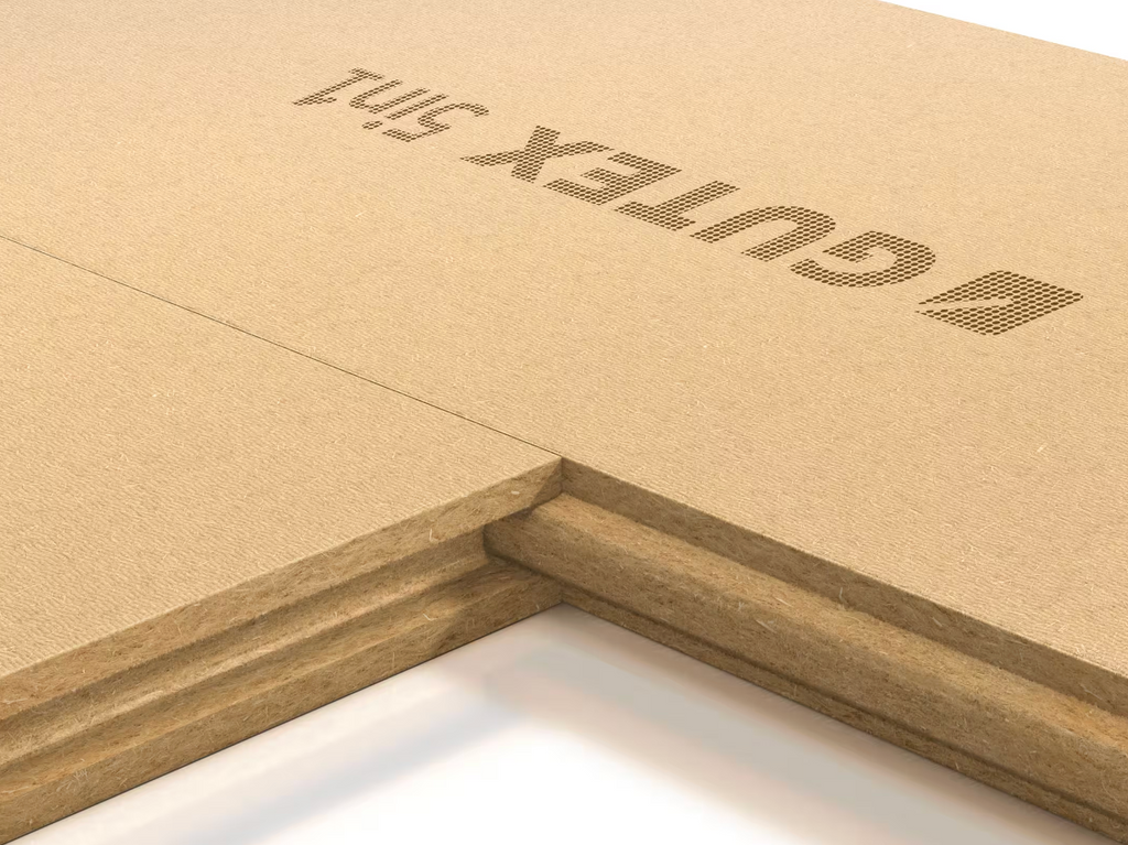 Gutex Thermowall är en fuktavvisande träfiberskiva för fasader och tak.