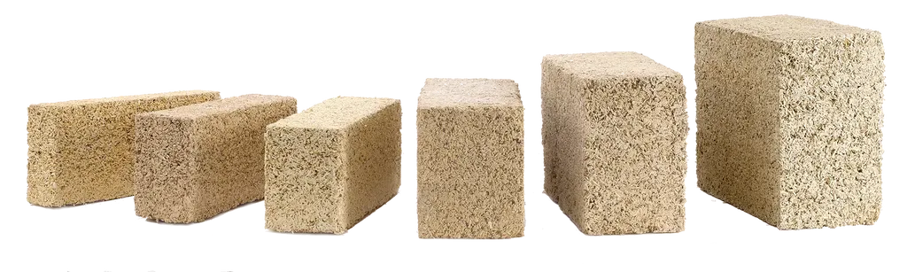 Hampakalkblock för murning av icke-bärande väggar eller som fyllning och isolering av träkonstruktioner.