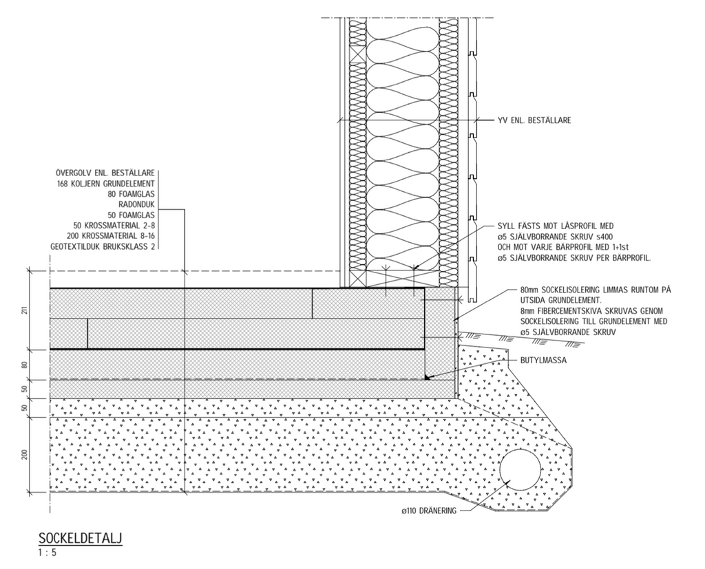 - Underliggande isolering, 2x Foamglas T3+ 80/50mm