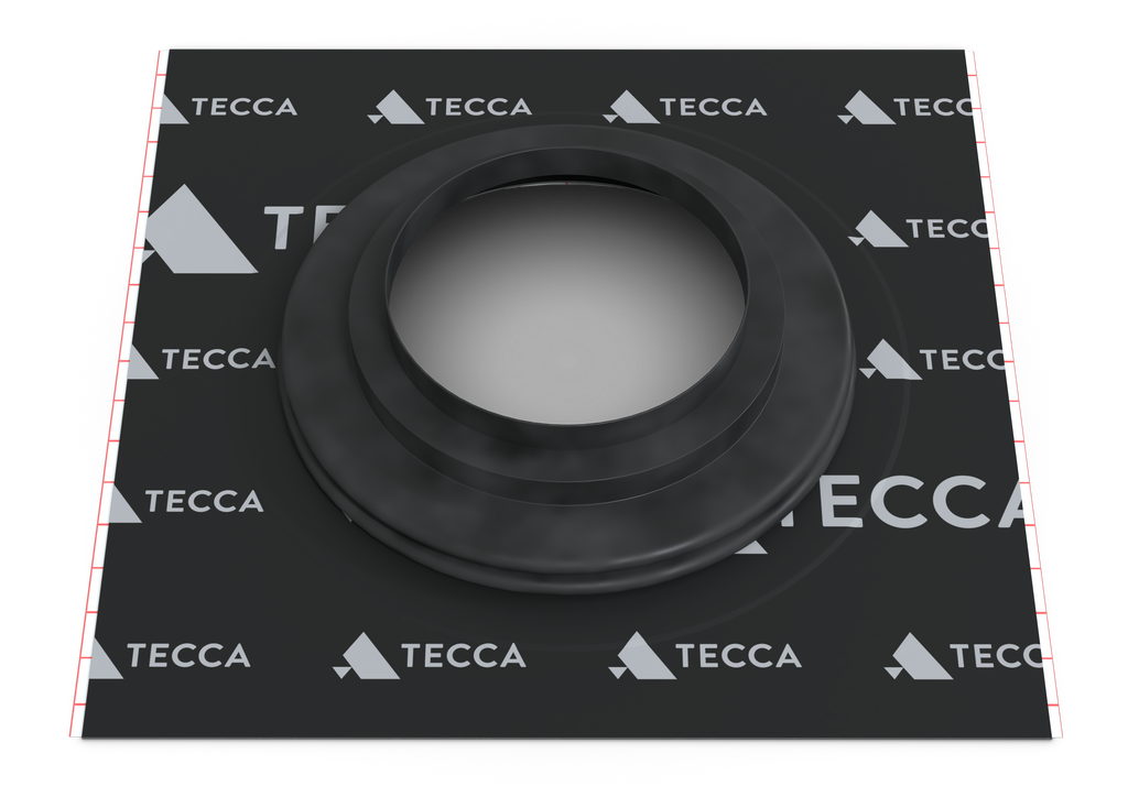 Håldiameter: 150-165 mm. Radonkrage med lufttätande och fuktskyddande genomföringsstosar för invändigt och utvändigt bruk. För ytterväggmaterial såsom utvändig vindskyddsduk, utvändig vindskyddsboard, ångspärr eller ångbroms invändigt i vägg och tak.