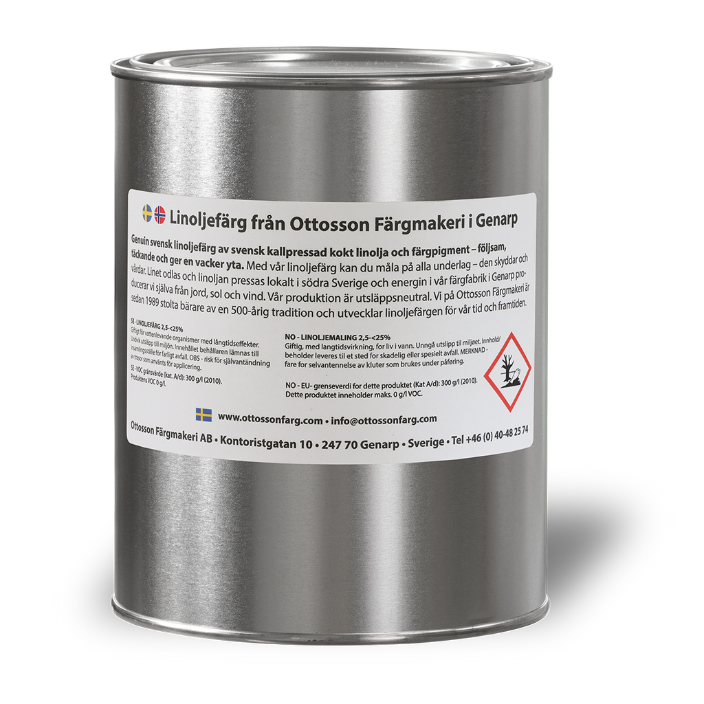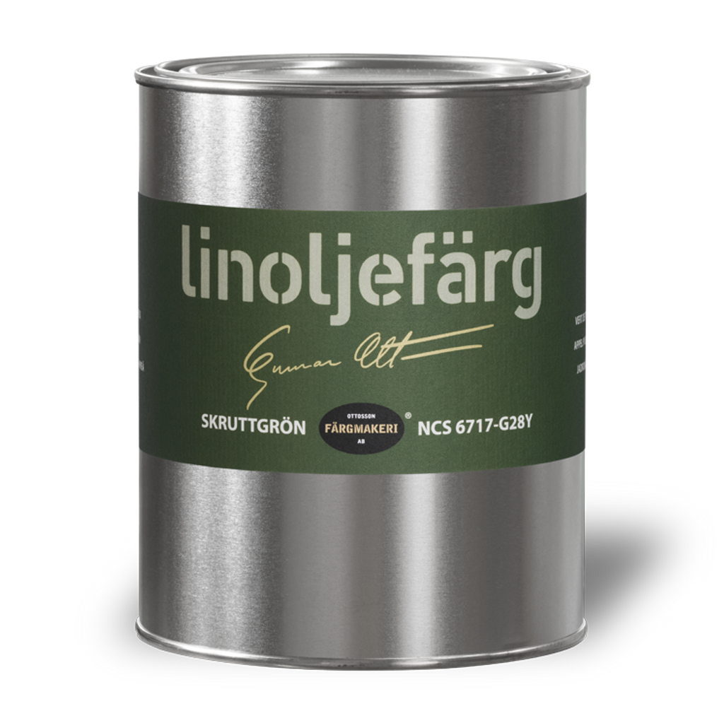 1 liter Ottossons Linoljefärg Skruttgrön. GLÖM EJ att du behöver rå linolja och balsamterpentin för att måla.