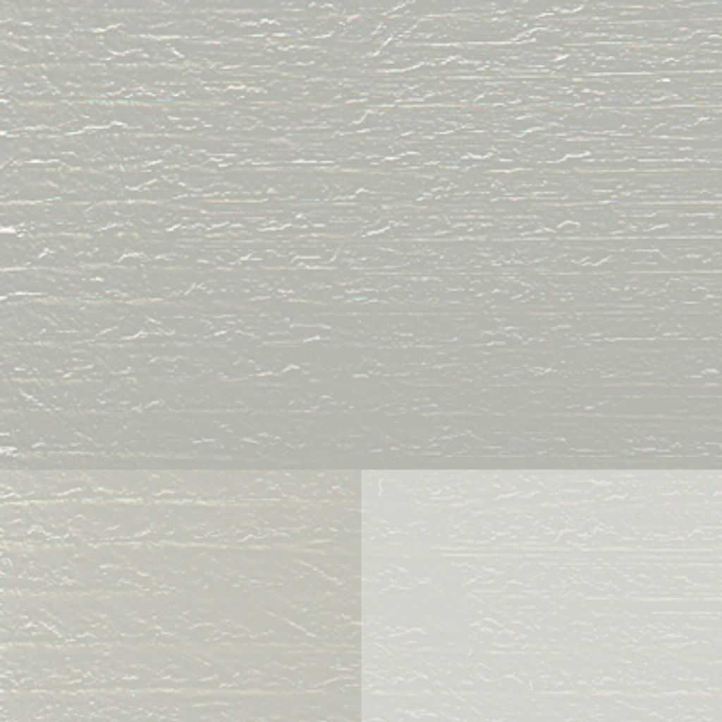 Färgprovet visar tre olika kulörer. (Överst) standardkulören, (vänster) blandning av lika volymdelar standardkulör och Vit Titan-Zink (1+1) samt (höger) blandning av en del standardkulör och tre volymdelar Vit Titan-Zink (1+3). Dessa olika kulörer kan du blanda till själv.