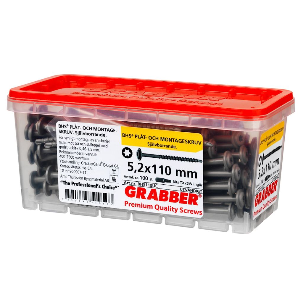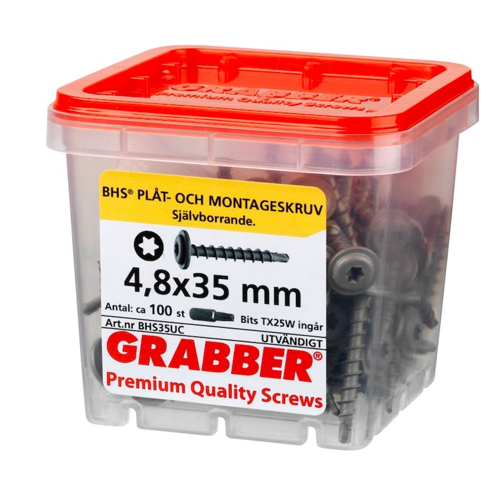Grabber BHS® - Självborrande plåt- och montageskruv. Synlig infästning. För utvändigt bruk, TX. Antal 100 st/frp. Bits TX25.