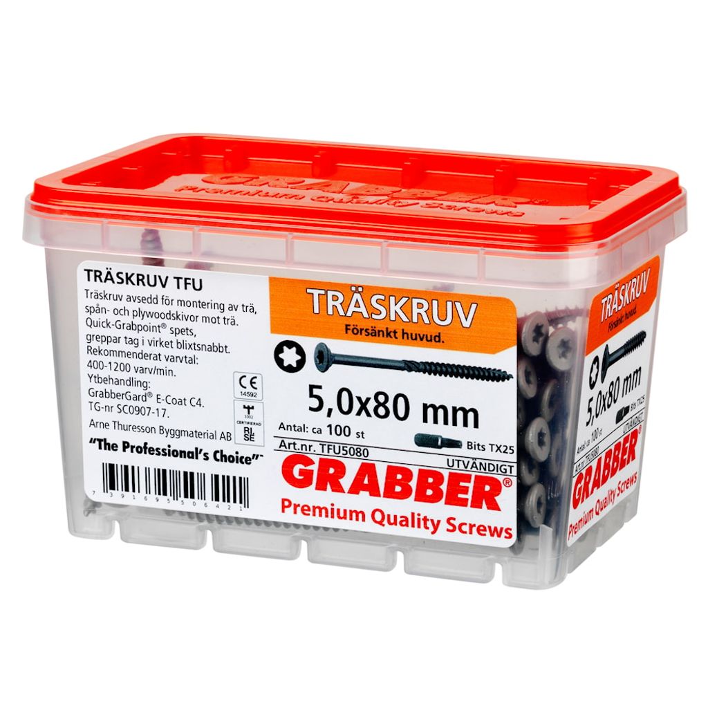 Träskruv avsedd för montering av trä, spån- och plywoodskivor mot trä. Försänkt huvud, TX bits. För utvändigt bruk. Rekommenderat varvtal: 400-1200 varv/min.